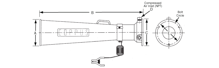 壓縮空氣或蒸氣透過單一入口接合裝置 進入Jectair鼓風機。由噴嘴噴出的氣體或蒸氣,形成文丘里原理,吸引周圍空氣經由入口進入Jectair,空氣便透過管狀擴散管以高速率的方式被排放出來。